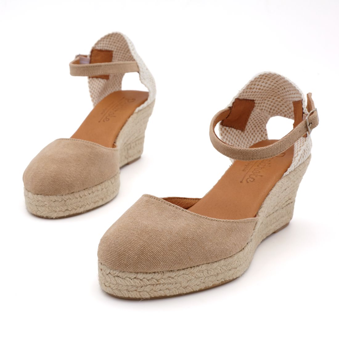 Nuestras preciosas Cuñas para mujer color canela serán el accesorio perfecto para completar tu look. Su tono cálido y natural es ideal para cualquier ocasión, desde una cena de verano hasta un paseo con los niños. Confeccionadas en lona de algodón 100%, con cuña de esparto de 8 cm, sobre una suela de goma antideslizante de alta calidad, ofrecen la mezcla perfecta entre estilo y comodidad.